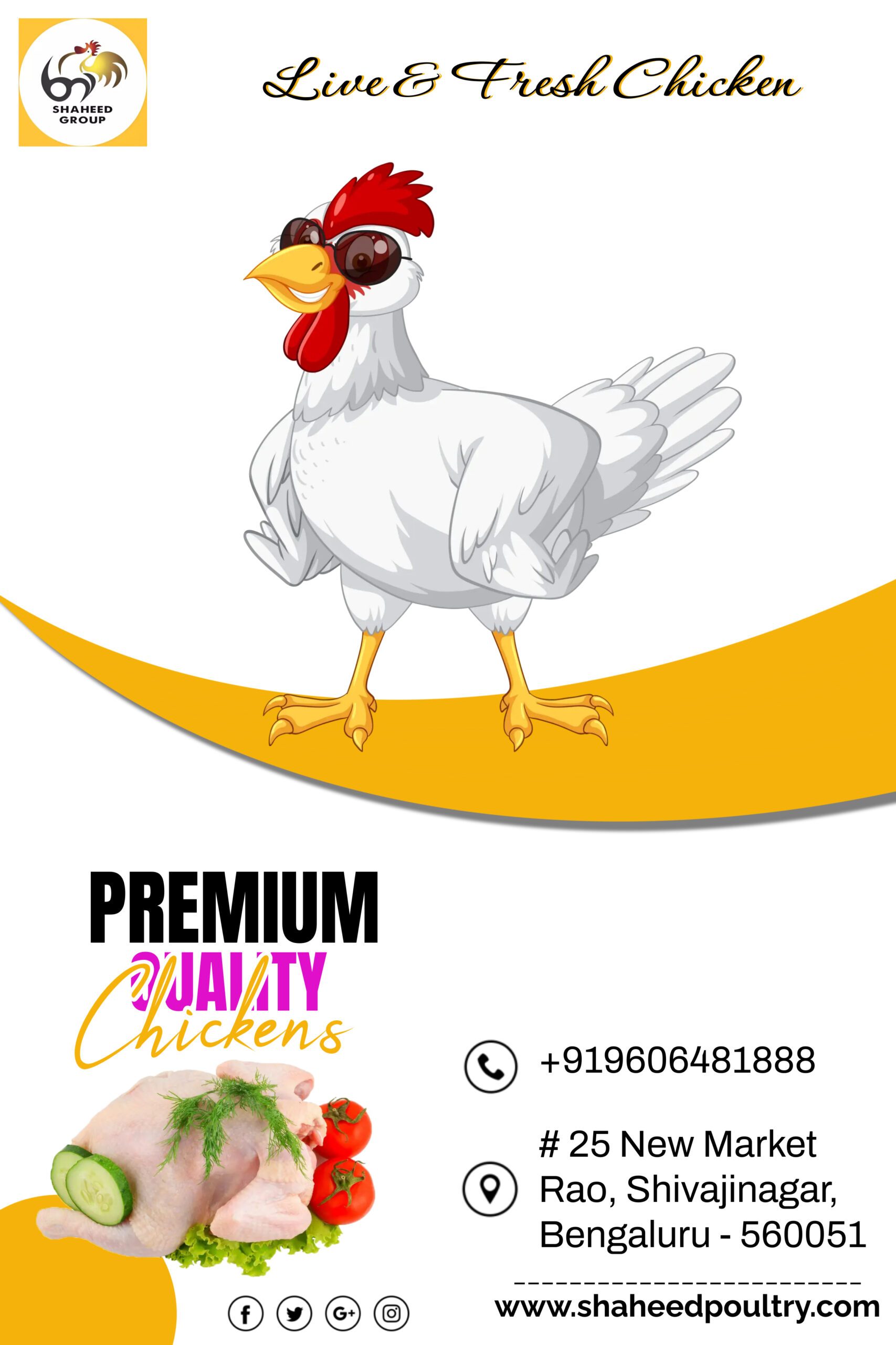 Best Quality Supplier Of LIVE & Fresh Chicken Welcome to SHAHEED POULTRY CENTRE Pvt. Ltd. Where hygiene meets quality in the world of wholesale and retail of Fresh Chicken Discover the pack that represents you Whole Chicken (With-Skin) Chicken Gizzard Chicken Drumstick Fresh Chicken Hearts Whole Chicken (WithOut-Skin) Fresh Chicken Breast Fresh Three Joint Wing Fresh Chicken Livers Fresh Chicken Shaheed Poultry "Farm-Fresh Perfection" “Indulge in the excellence of freshness – where every cut tells a tale of quality. Elevate your culinary experience with our farm-fresh chicken, because when it comes to meat, we believe in offering nothing but the best to you.” . . . Get in Touch! Contact Form DemoFull NameEmailYour MessageSubmit Form HKP Road, Swamy Shivanandapuram, Shivaji Nagar, Bengaluru, Karnataka 560051 (91) 09606481888 Processing Unit Main Unit Unit-2 Unit 3 Unit-4